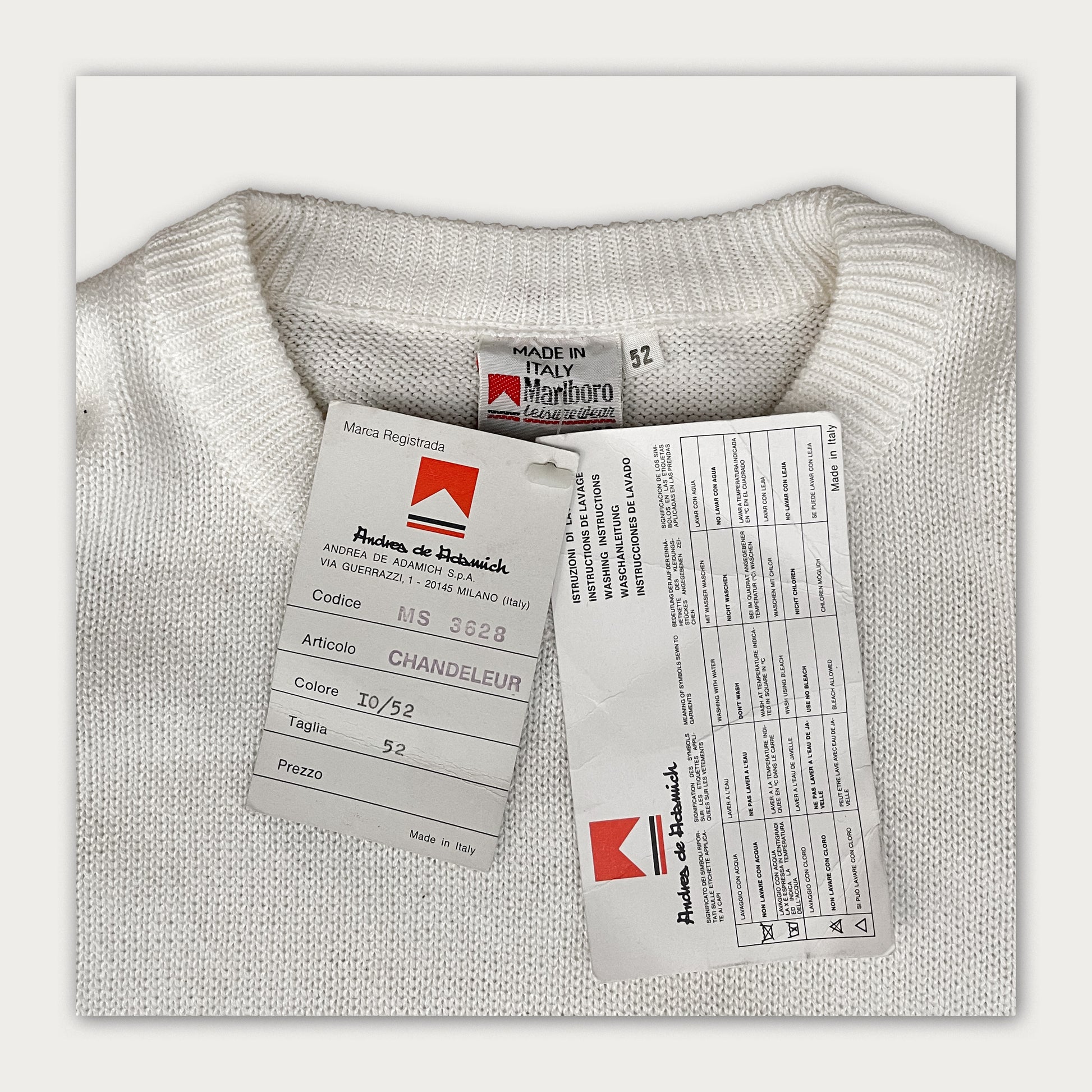 Never worn Marlboro Leisure Wear Sweater from early 70s. Made by Marlboro for F1 driver Andrea De Adamich. (some small stains)